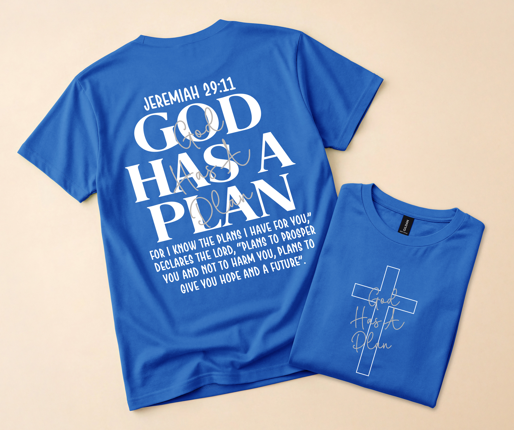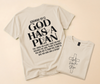 Simple, soft, and meaningful, this design features a clean script “God Has a Plan” placed subtly for that effortless, everyday look. It’s not loud—but it speaks volumes. A quiet kind of faith that shows up in how you move, how you trust, and how you keep going.