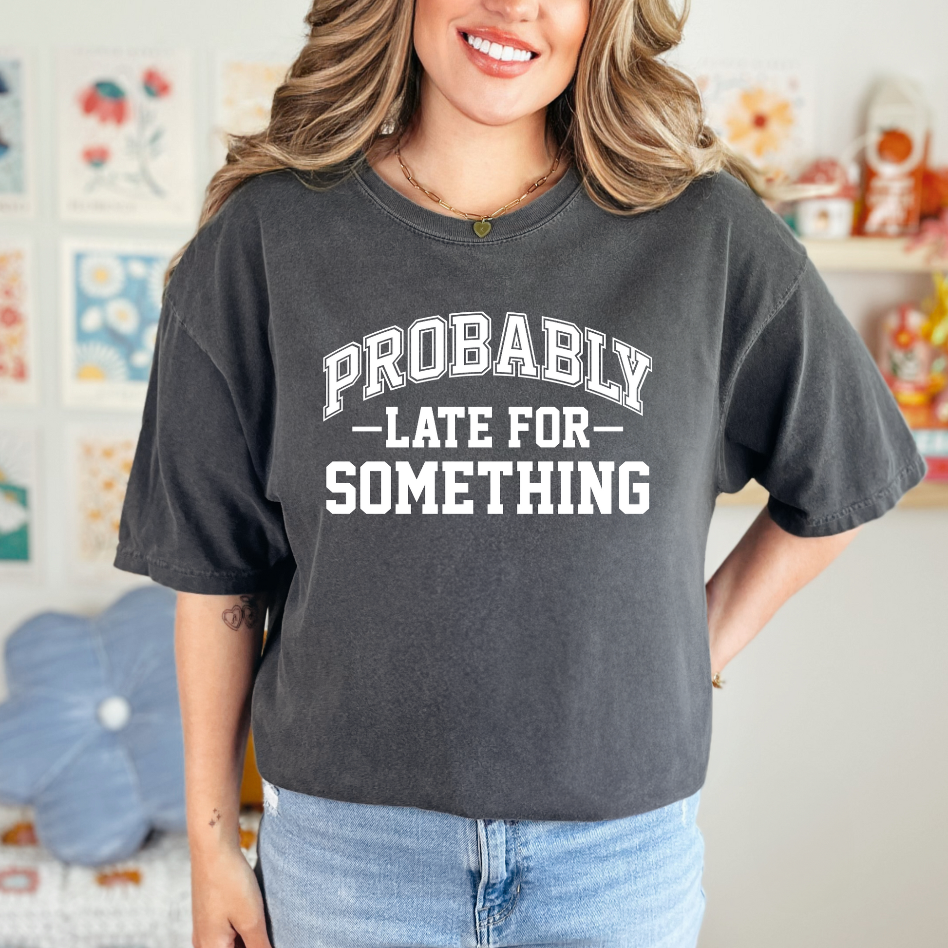 Always running a little behind? This “Probably Late for Something” graphic tee is your new go-to. With its playful statement and relaxed fit, it’s perfect for casual days, coffee runs, or just embracing your laid-back vibe. Made from soft, high-quality fabric for all-day comfort.
